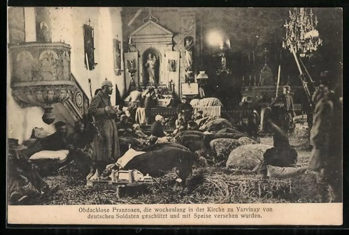 AK Varvinay, Abri pour Francais sans-abri dans l`église protégée par des soldats allemands