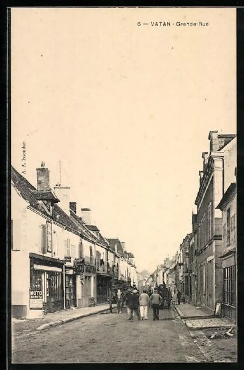 AK Vatan, Grande-Rue avec passants et bâtiments historiques