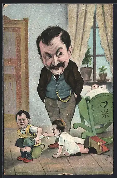AK Vater beobachtet seine Kinder beim Töpfchentraining, Toilettenhumor