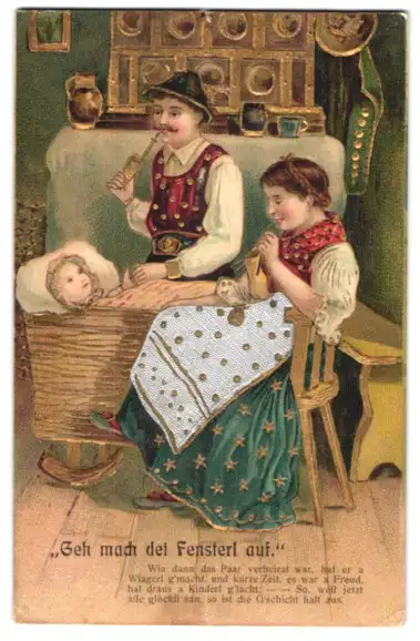AK Vater und Mutter erfreuen sich an ihrem Neugeborenen