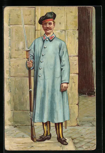 AK Vatikan, Soldat der schweizer Garde in Uniform mit Gewehr