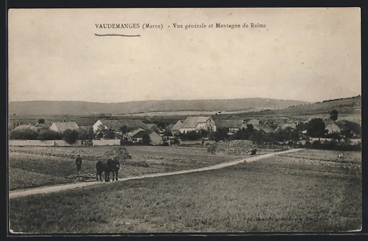 AK Vaudemanges /Marne, Vue générale et Montagne de Reims