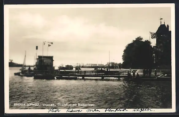 AK Vegesack /Bremer Schweiz, Cafe Strandlust mit Bootsanleger