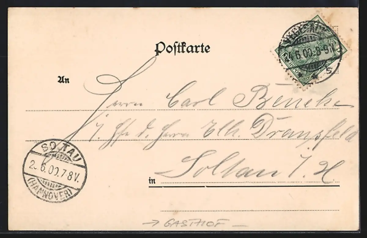 alte Ansichtskarte, gelaufen 1900, guter Zustand