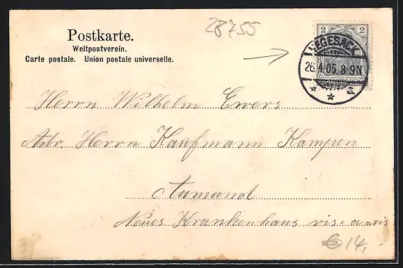 alte Ansichtskarte, gelaufen 1905, guter Zustand