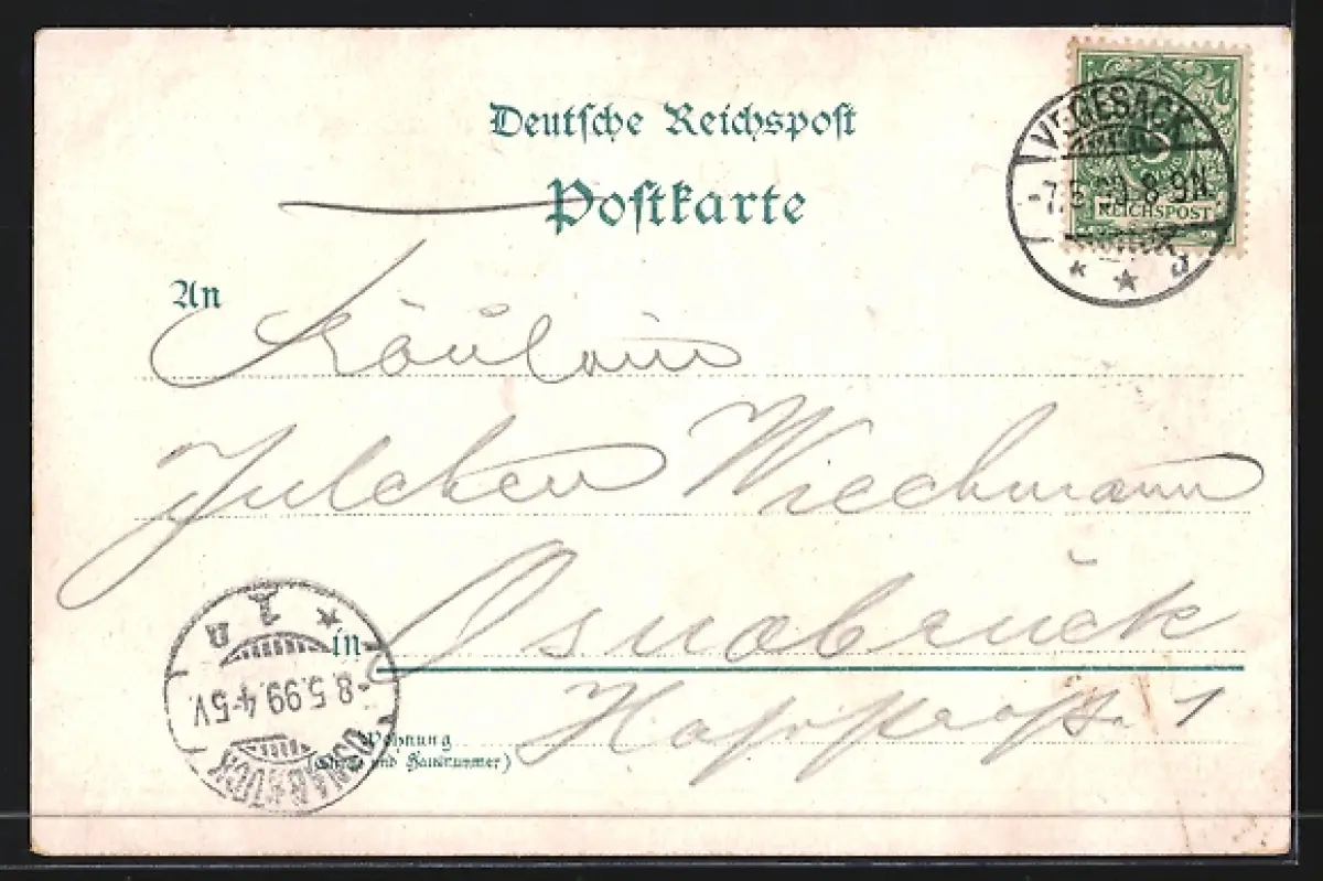 alte Ansichtskarte, gelaufen 1899, guter Zustand