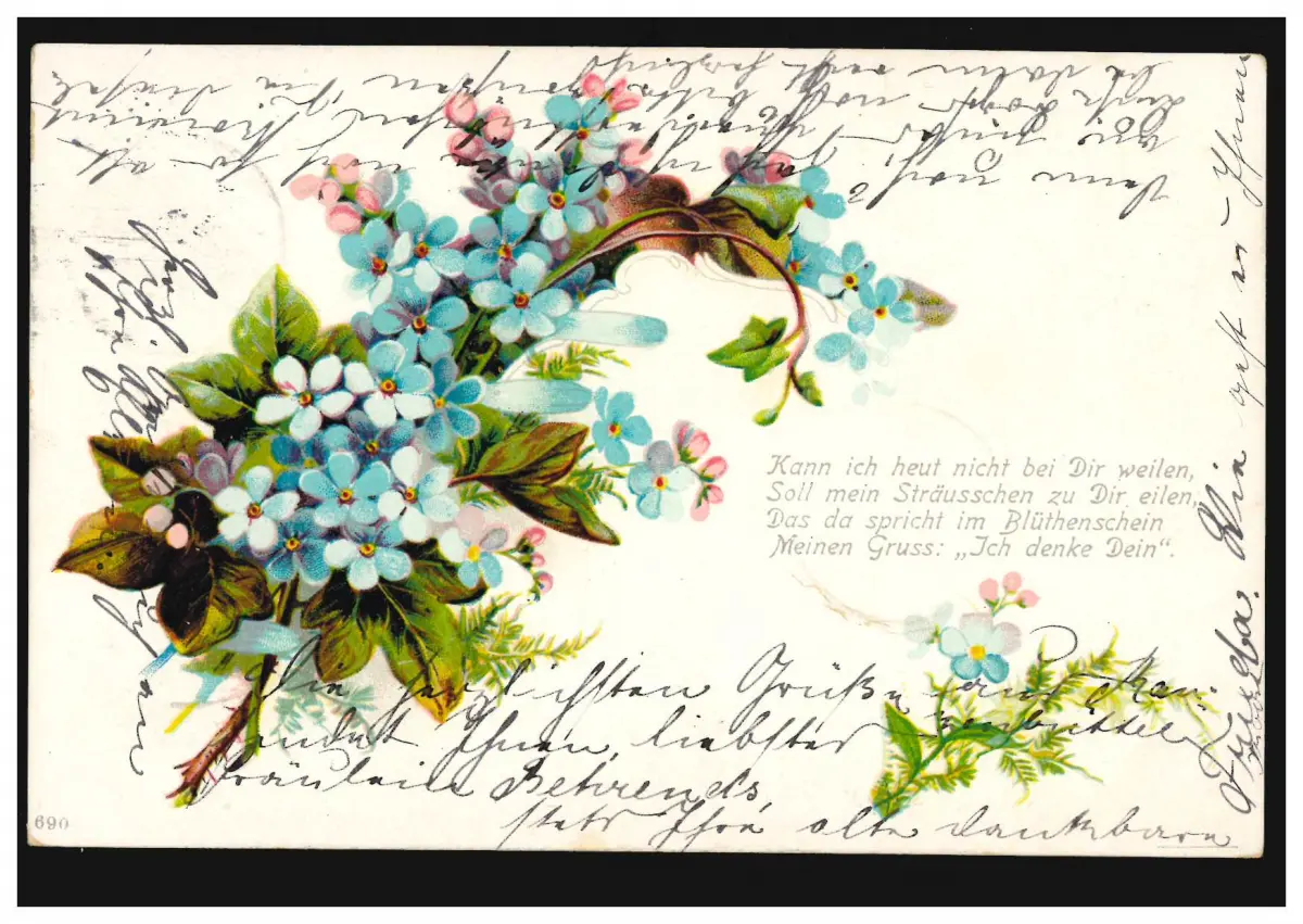AK Veilchenstrauß, Gedicht: Mein Gruss "Ich denke Dein", BERNE 9.9.1902