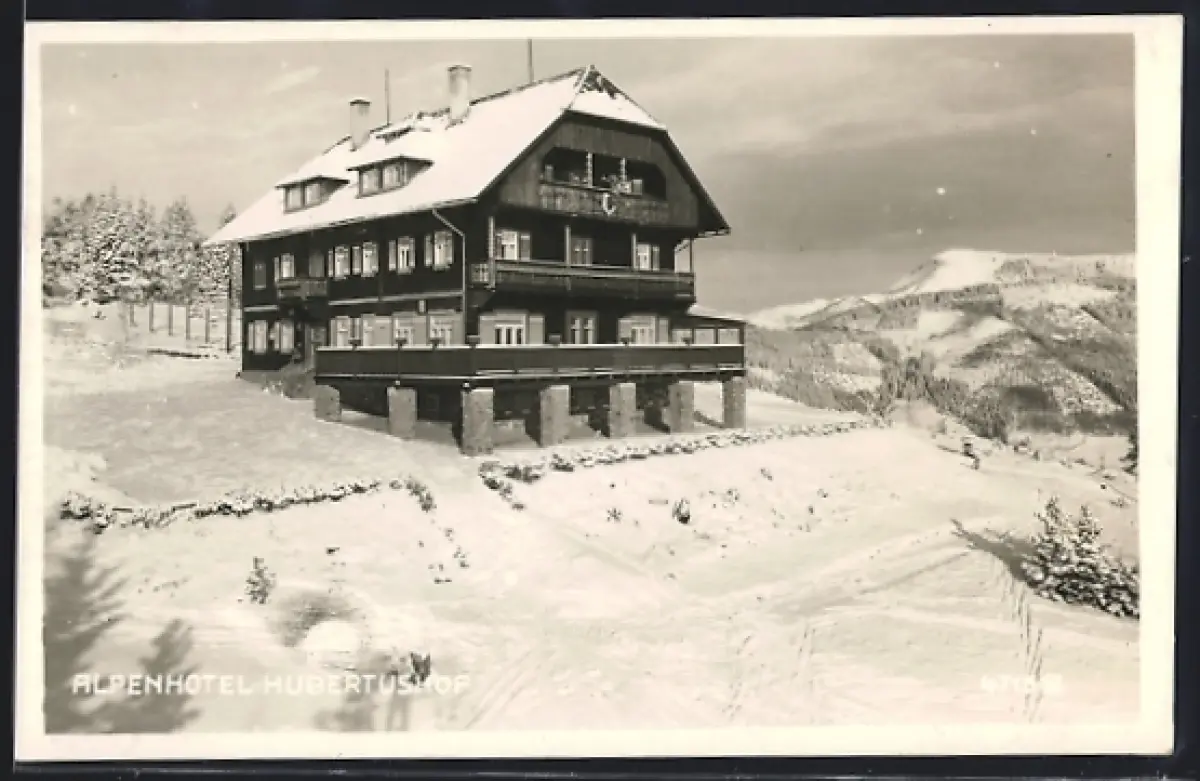 AK Veitsch, Alpenhotel Hubertushof im Winter