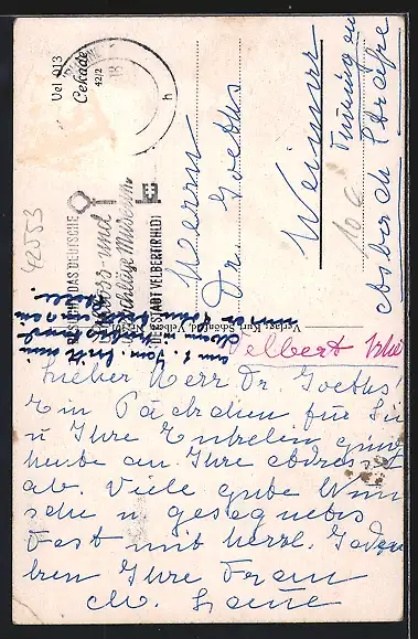 alte Ansichtskarte, gelaufen, Briefmarke entfernt, rückseitig Oberflächenschaden, Eckknicke links u. rechts, guter Zustand