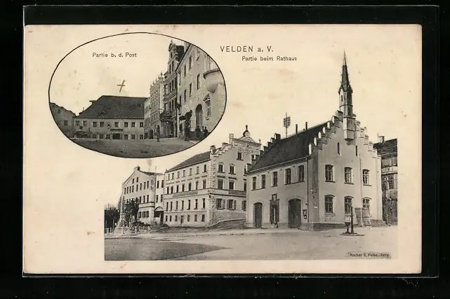 AK Velden a. V., Partie beim Rathaus und bei der Post