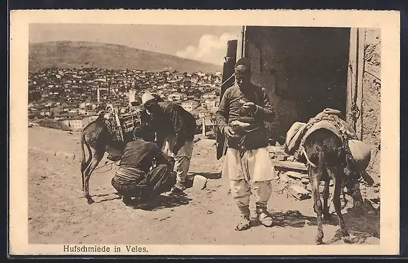 AK Veles, Hufschmiede mit Blick auf die Stadt