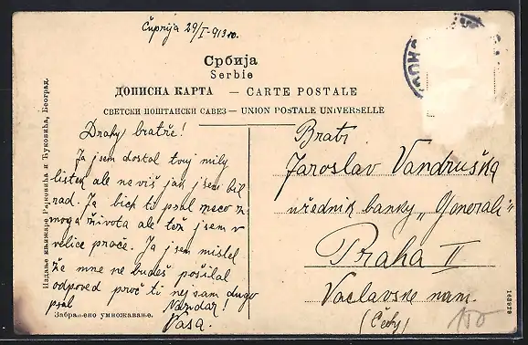 alte Ansichtskarte, gelaufen, Stempelspur, Briefmarke entfernt, rückseitig Oberflächenschaden, guter Zustand
