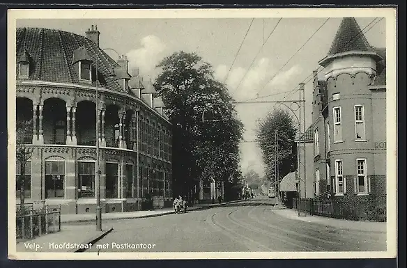 AK Velp, Hoofdstraat met Postkantoor, Strassenbahn