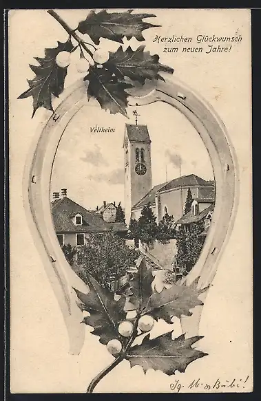 AK Veltheim, Kirche im Hufeisen, Neujahrsgruss