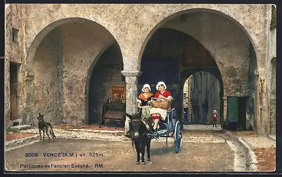 AK Vence, Portiques de l`ancien Évêché avec charrette et ânes