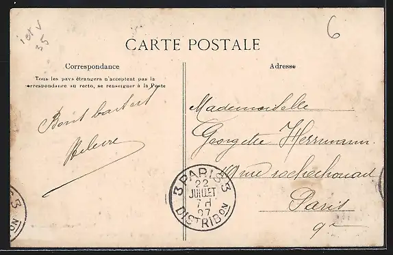 alte Ansichtskarte, gelaufen 1907, Eckknick oben rechts, guter Zustand