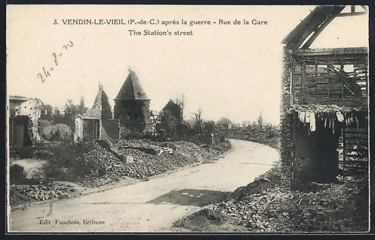 AK Vendin-le-Vieil, Rue de la Gare après la guerre