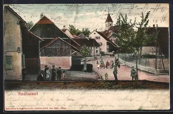 AK Vendlincourt, Ortspartie mit Blick zur Kirche