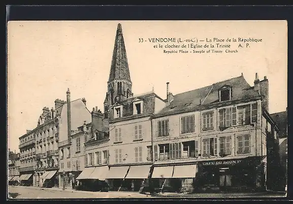 AK Vendôme, La Place de la République et le clocher de l`Église de la Trinité