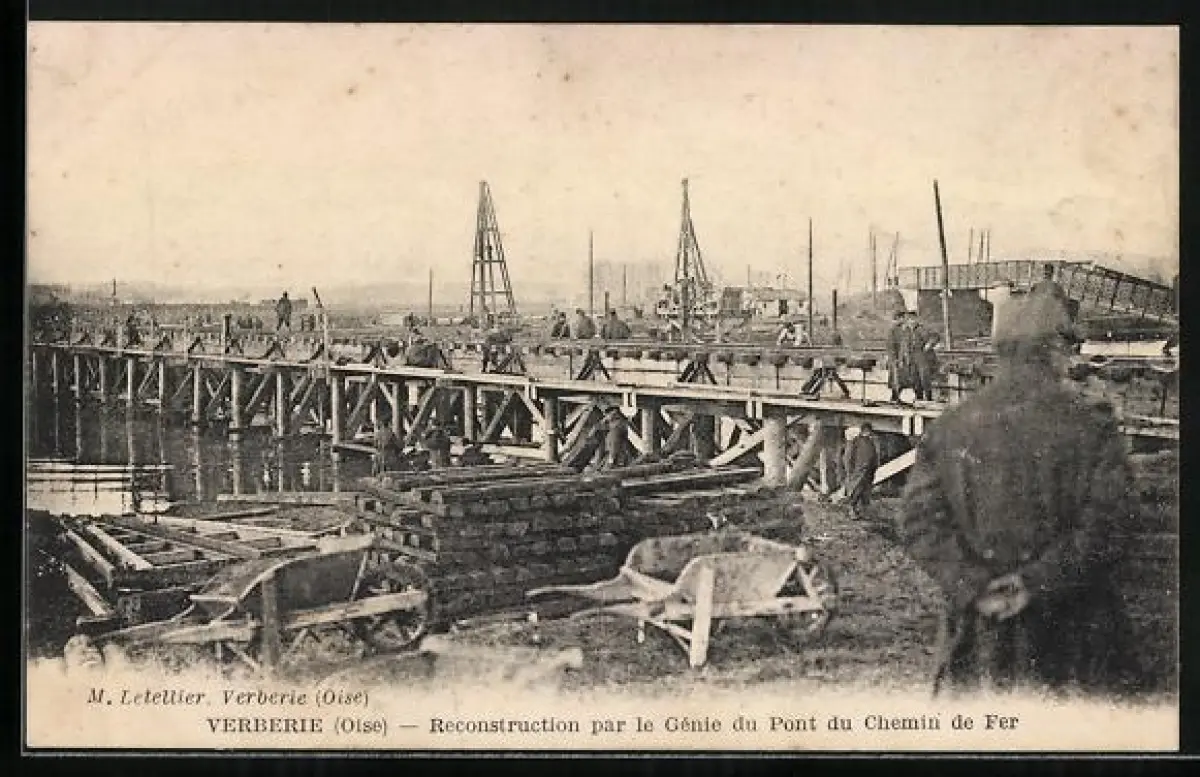 AK Verberie /Oise, Reconstruction par le Génie du Pont du Chemin de Fer