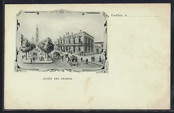 AK Verdelais, Allées des Tilleuls avec animation urbaine et calèche