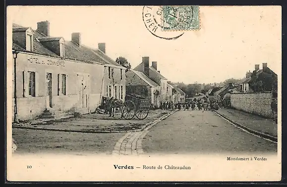 AK Verdes, Route de Châteaudun avec Hôtel et charrette