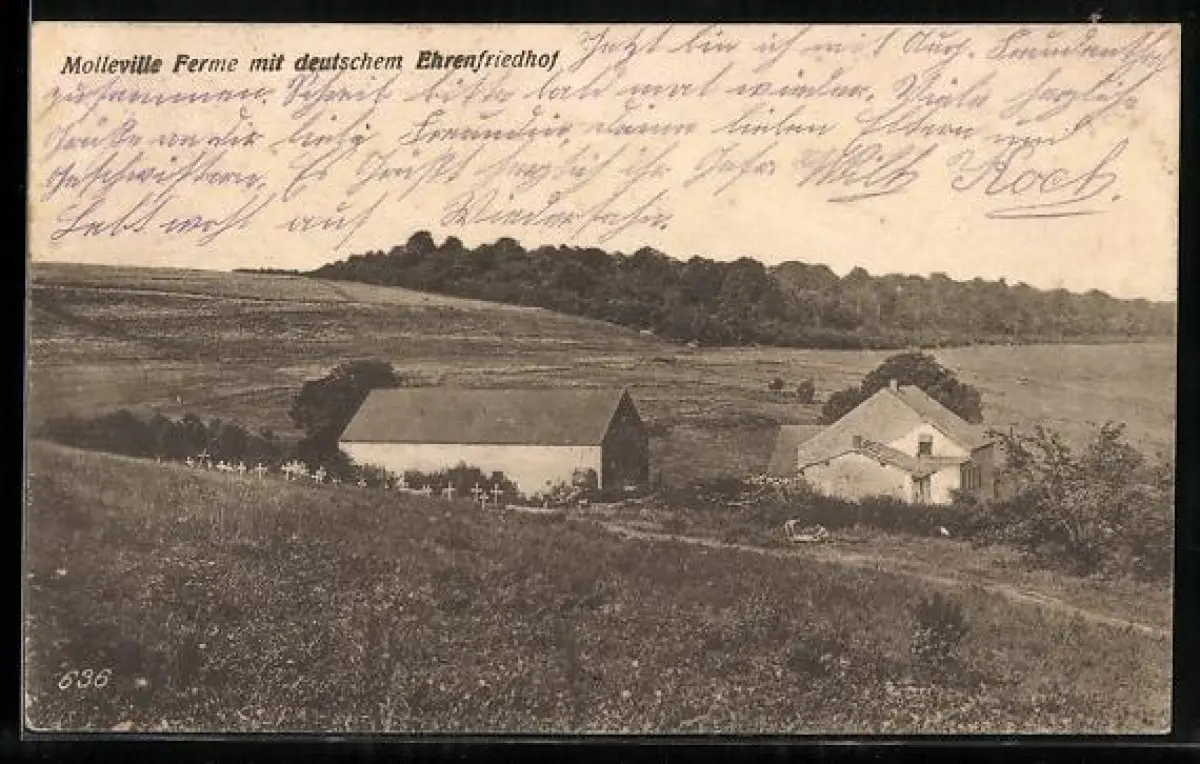 AK Verdun, Molleville Ferme, Ansicht mit deutschem Ehrenfriedhof