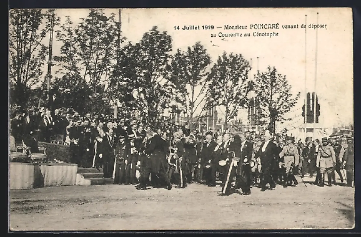 AK Verdun, Monsieur Poincaré venant de déposer sa Couronne au Cénotaphe 1919