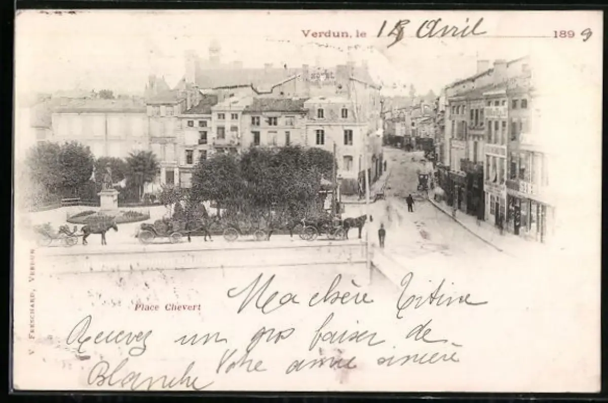 AK Verdun, Place Chevert avec vue sur la place et les bâtiments environnants