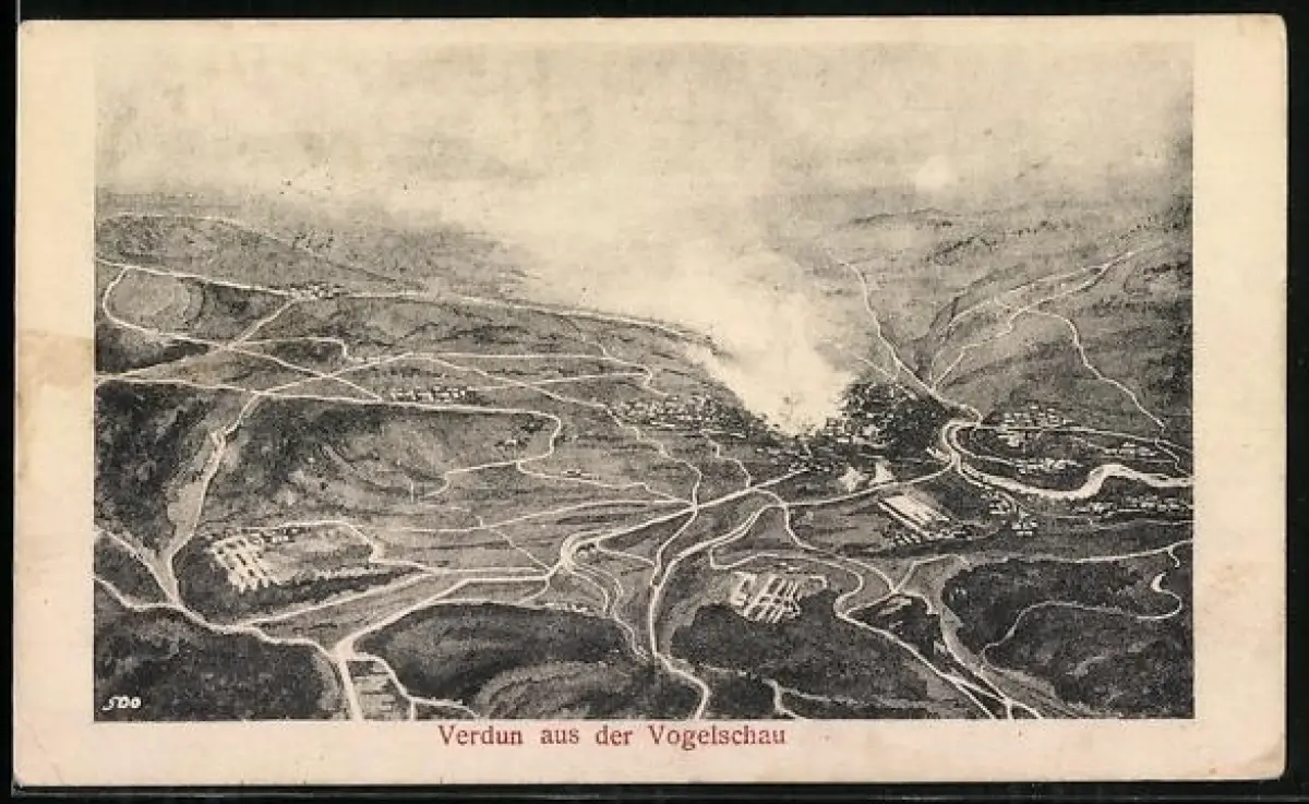 AK Verdun, Vue aérienne de la ville en temps de guerre