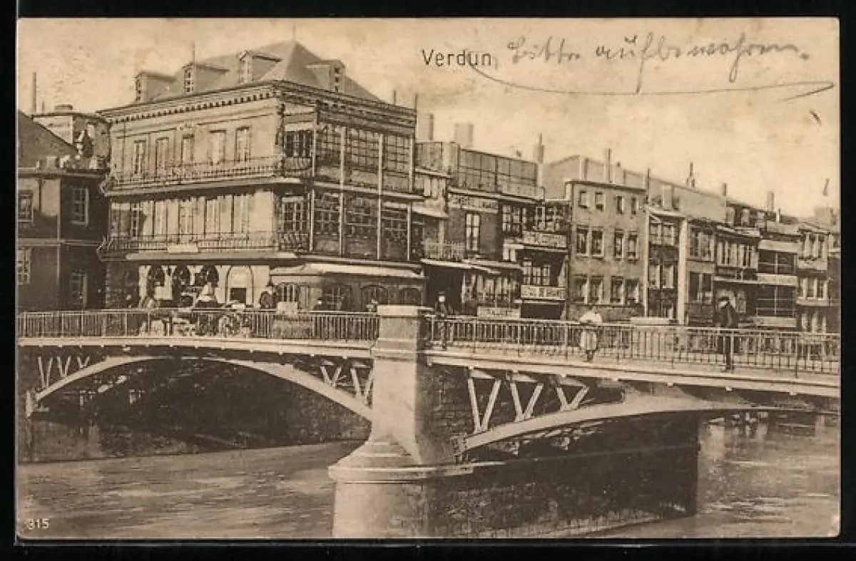 AK Verdun, Vue du pont et des bâtiments au bord de la rivière