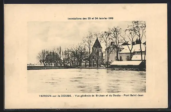 AK Verdun-sur-le-Doubs, Hochwasser / Inondations 1910, Pont Saint-Jean
