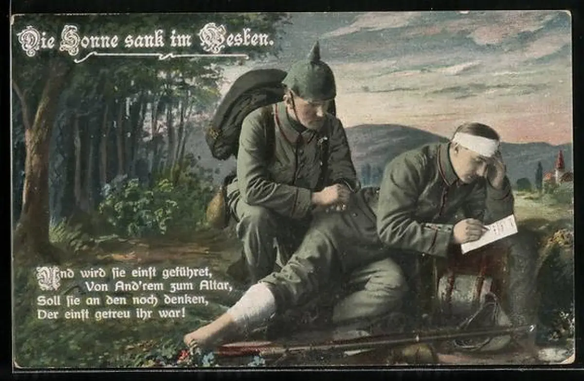 AK Verletzter Soldat schreibt einen Brief, Die Sonne sank im Westen