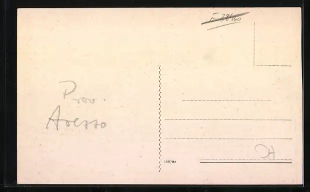 Personenbezogene Daten auf der Rückseite der Karte wurden durch blauen Textmarker unkenntlich gemacht. Die blauen Stellen sind auf die Vorderseite durchgeweicht und wirken sich negativ auf das Postkartenfoto aus