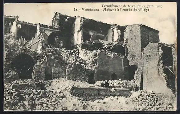 AK Vernegues, 34, Maisons a l`entree de Village, Tremblement de Terre 1909