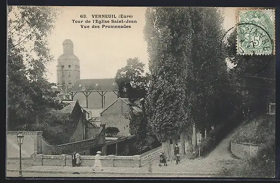 AK Verneuil, Tour de l`Église Saint-Jean vue des Promenades