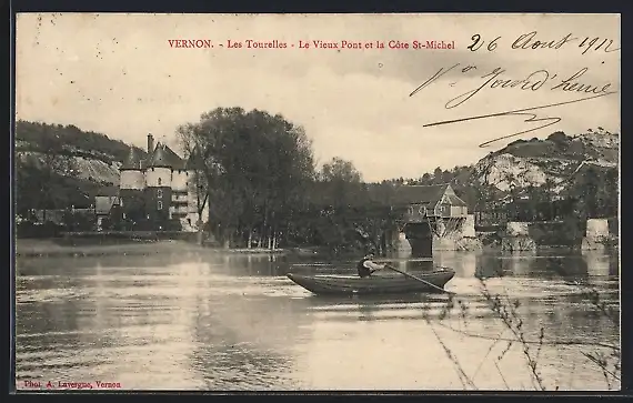 AK Vernon, Les Tourelles, Le Vieux Pont et la Côte St-Michel