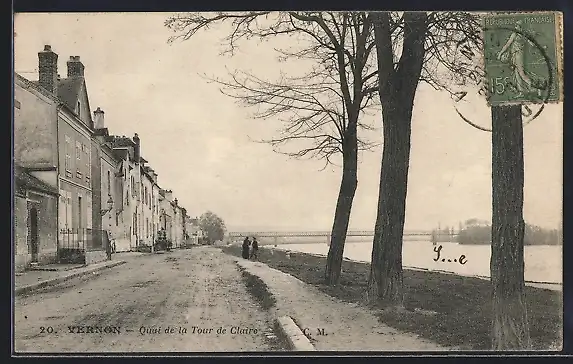 AK Vernon, Quai de la Tour de Clairvaux avec arbres et vue sur la Seine