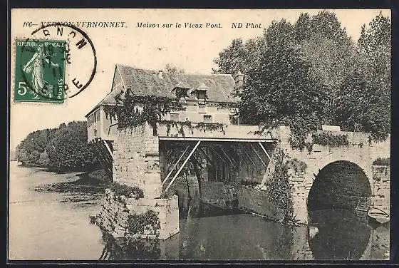 AK Vernon-Vernonnet, Maison sur le Vieux Pont