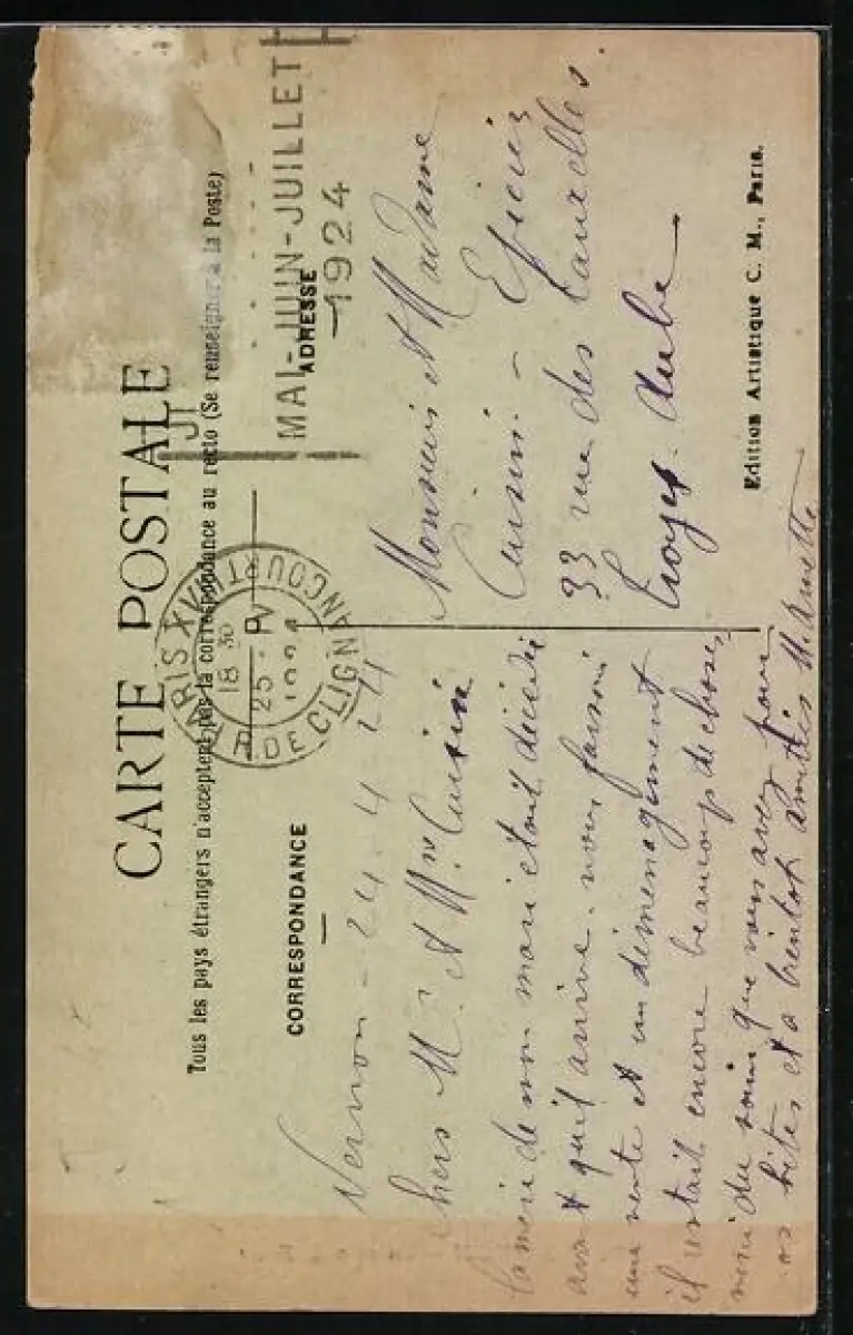 alte Ansichtskarte, gelaufen, Briefmarke entfernt, guter Zustand