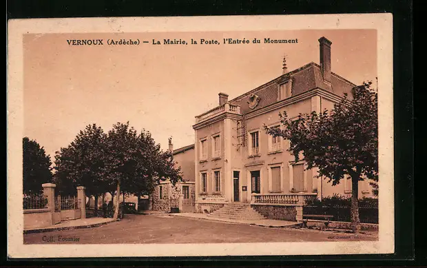 AK Vernoux, La Mairie, la Poste, l`Entrée du Monument