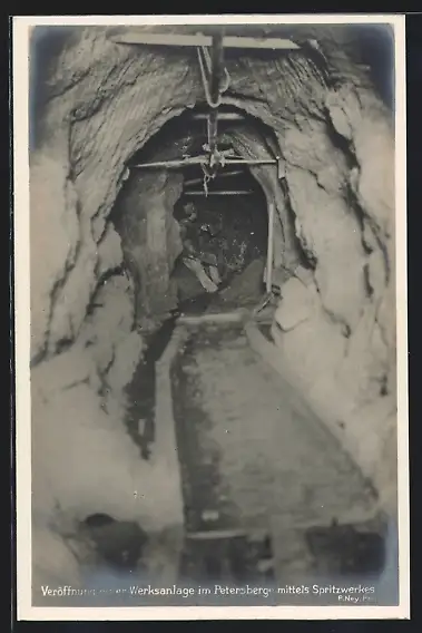 AK Veröffnung einer Werksanlage im Petersberg mittels Spritzwerkes, Bergbau