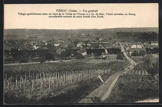 AK Véron /Yonne, Vue générale du village et de la vallée de l`Yonne