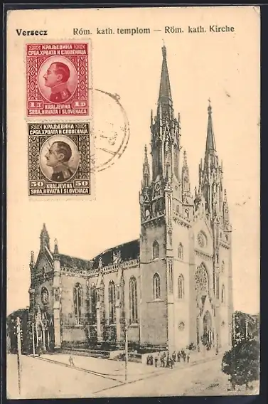 AK Versecz, Röm. kath. Kirche mit Strassenpartie
