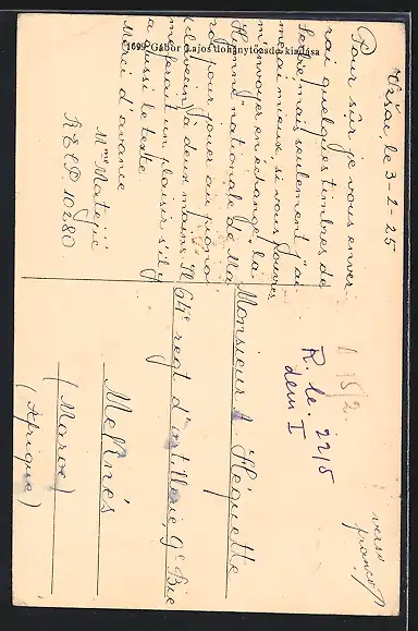 Personenbezogene Daten auf der Rückseite der Karte wurden durch blauen Textmarker unkenntlich gemacht. Die blauen Stellen sind auf die Vorderseite durchgeweicht und wirken sich negativ auf das Postkartenfoto aus