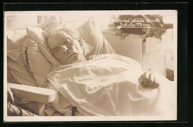 AK Verstorbener Mann im Krankenbett, Postmortem