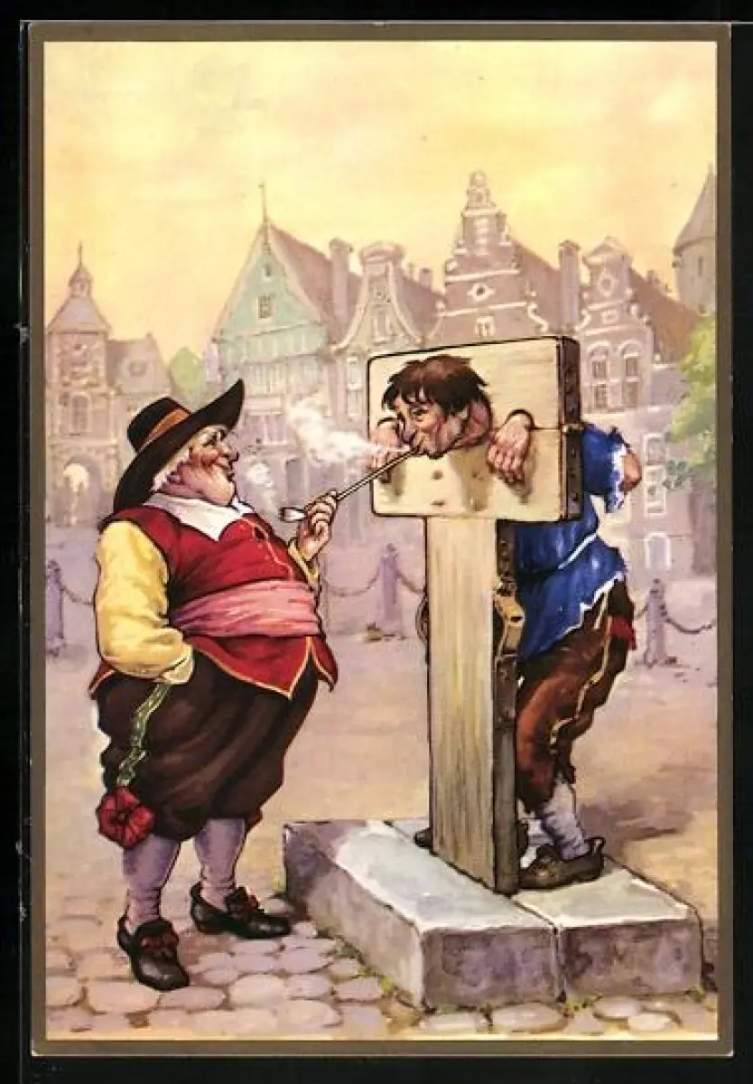AK Verurteilter am Pranger raucht eine Pfeife mit Troost Tabak