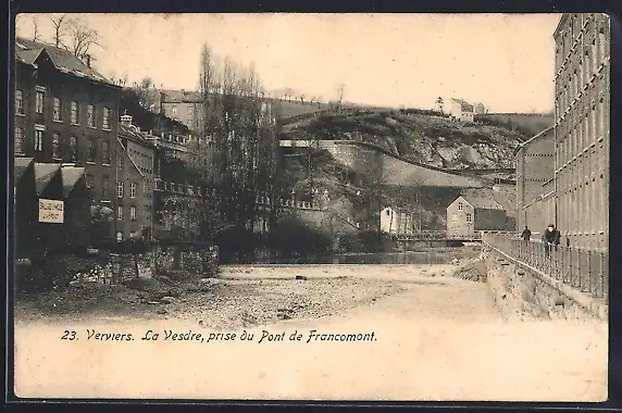 AK Verviers, La Vesdre, prise du Pont Francomont