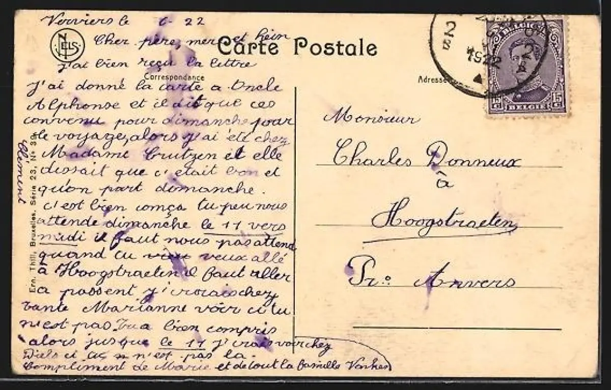gelaufen 1922, Eckknicke li. unten u. re., guter Zustand