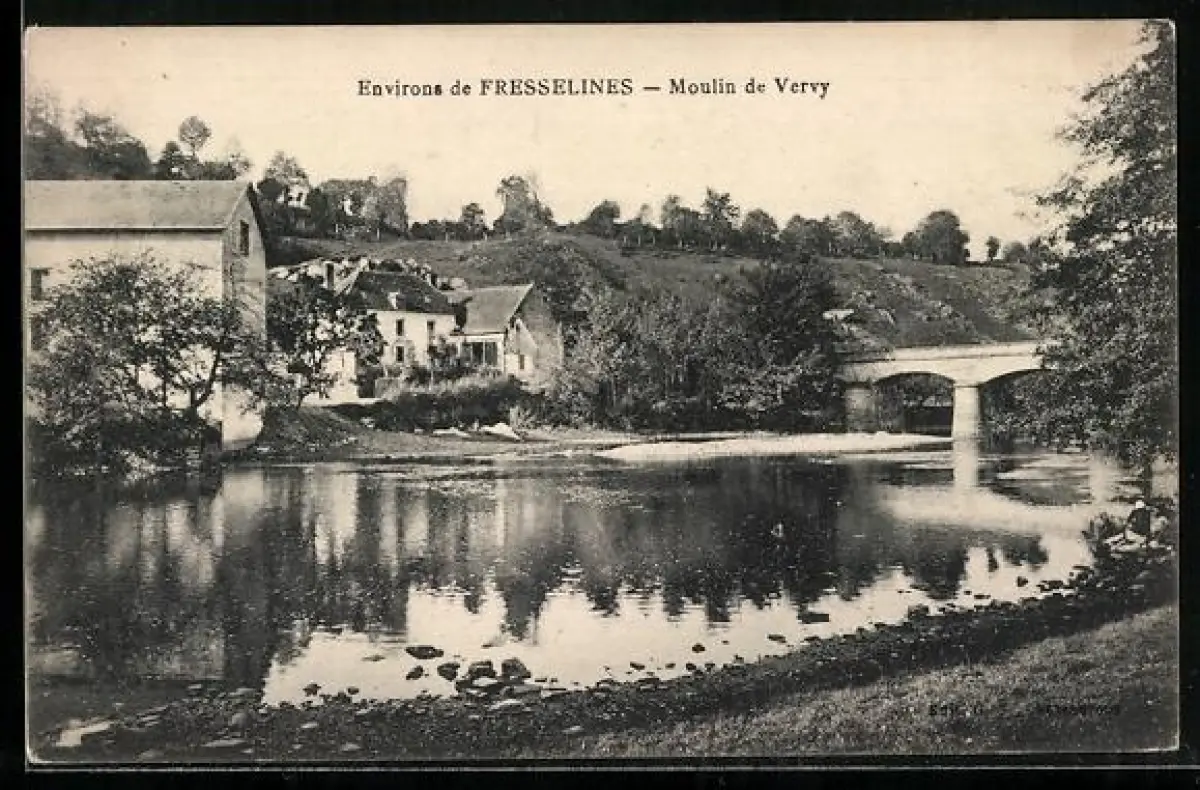 AK Vervy près Fresselines, Moulin de Vervy et pont sur la rivière